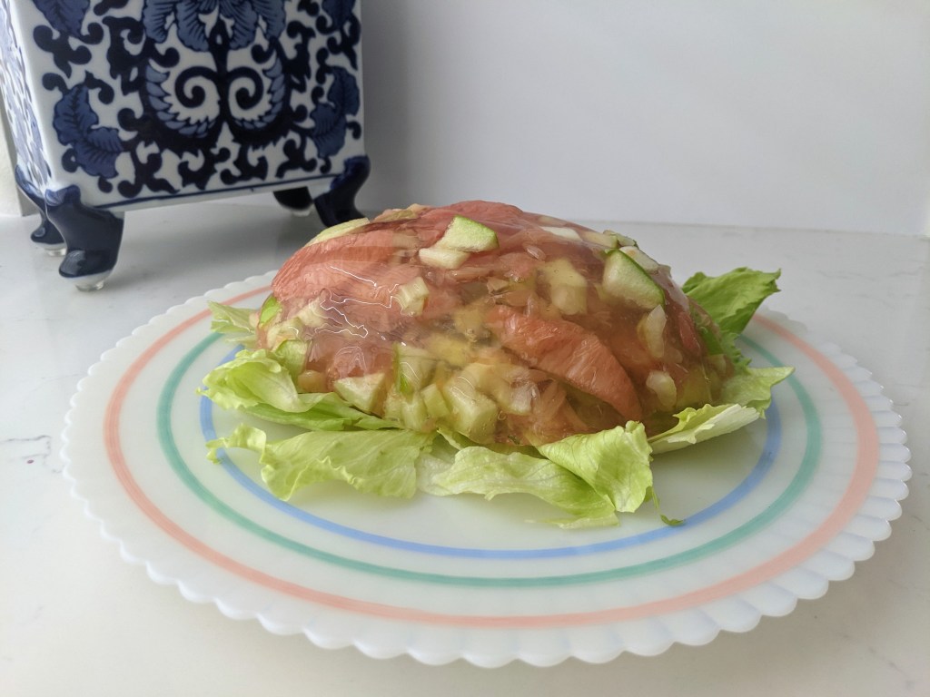 As for presentation, the natural color of this dish is a far cry from some of the artificially enhanced hues of Jell-O salads. Due to its subdued appearance, its arrival at the table may also seem less dramatic.