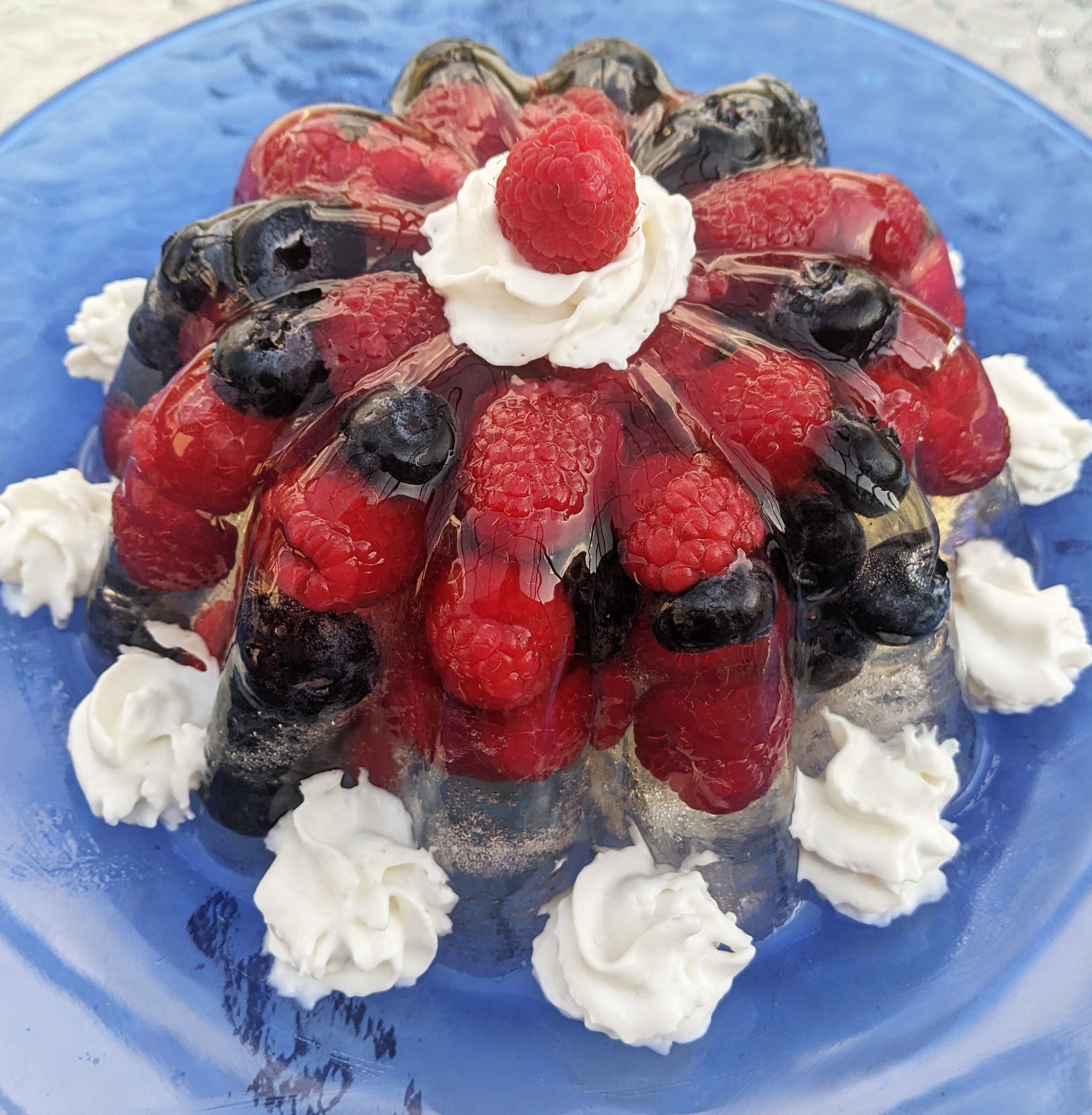 Comments: Woohoo! Happy New Year! We chose to celebrate with this divine prosecco and berry gelatin dessert that gently fizzles in your mouth, while the accompanying fresh fruit and whipped cream add color, sweetness, and texture.