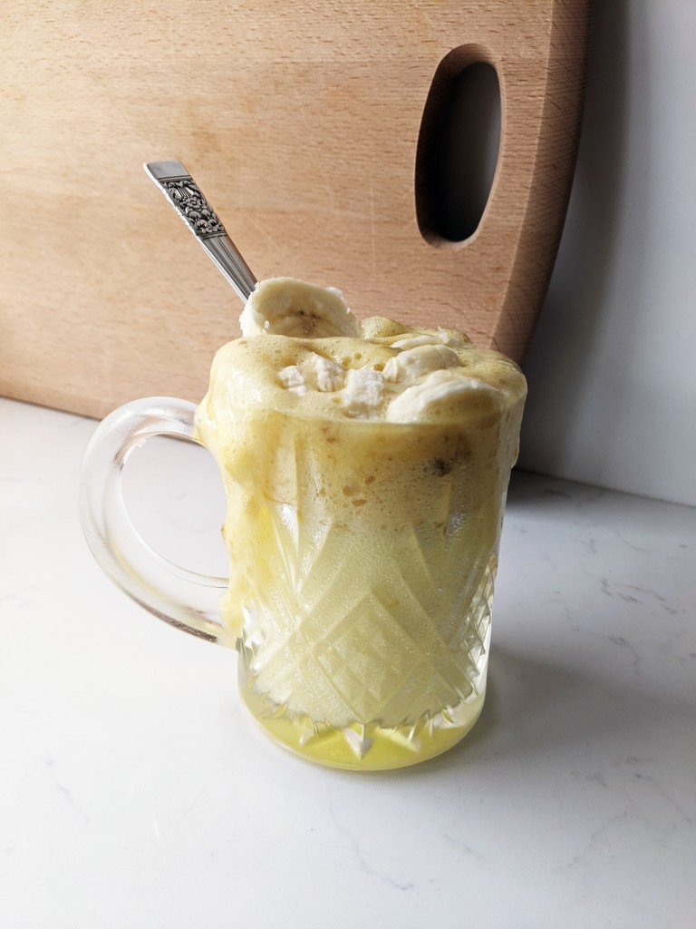 2. Beat egg, yolk and white, on high for four to five minutes or until very thick and add it to the banana mixture.